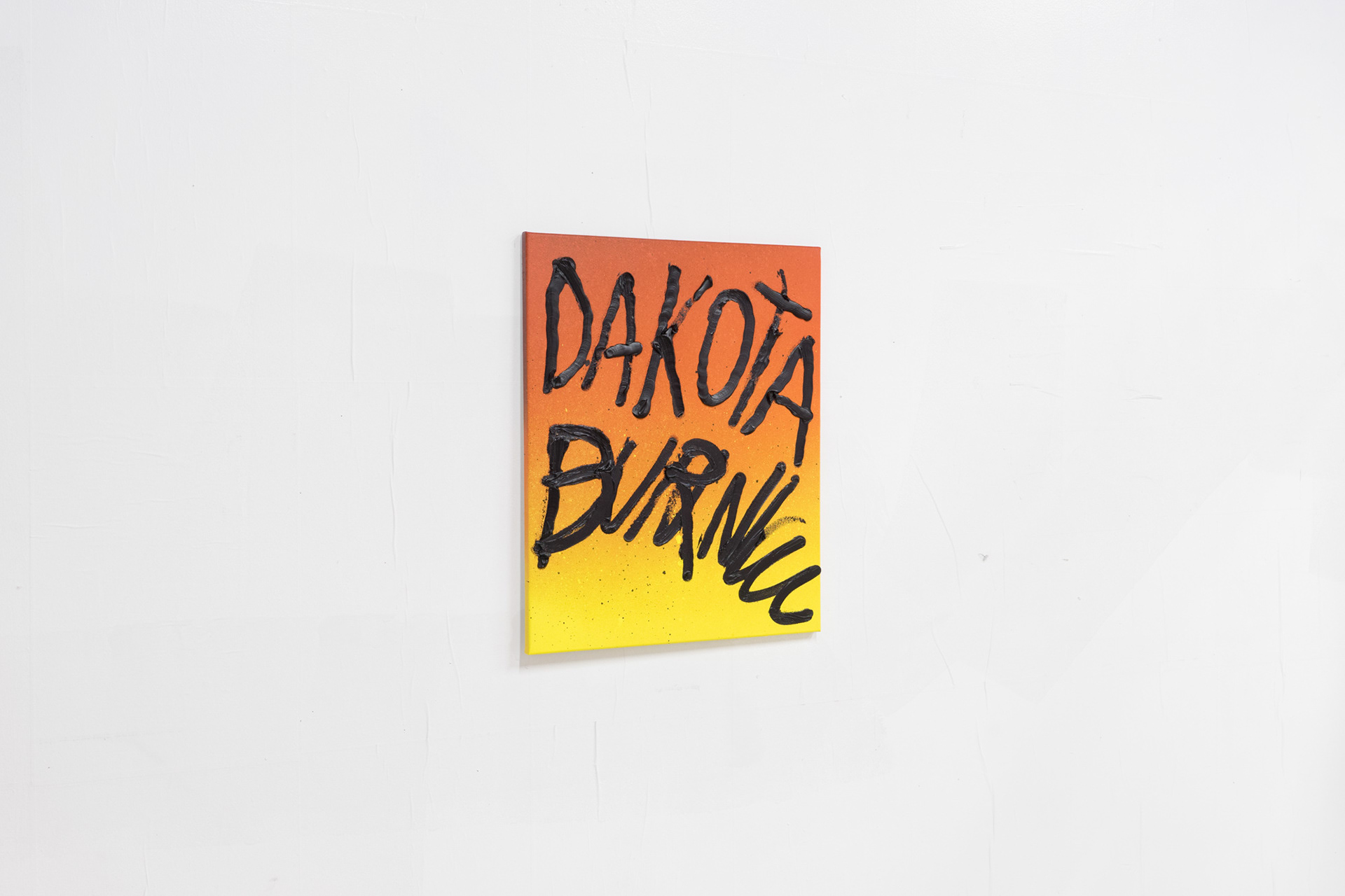Stray Rays in Grease exhibition explores the idea of a paradise or utopia unraveling. The show, with painting, photography, and sculpture, symbolized our time. The paintings are made using headlines from news sources that point to actual events of exploitation of weaponized online media platforms. Burnt plywood palm trees sprout from the gravel and ash, accompanied by a number of the beast paintings signifying challenged moral and ethical social experiences. Rock filled the entire gallery floor to replace the idea of sand at a beach, making walking the show challenging. The exhibition is intended to be delirious, with disconnected topics from all angles under the sun.